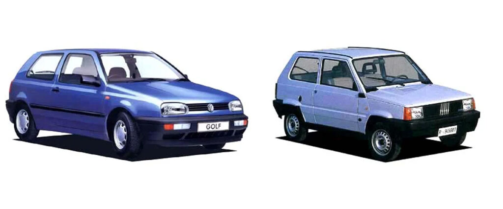 候補に上がったのはワーゲンのゴルフ3(1991-2002年)とフィアットの初代パンダ1981-1999年)など。
